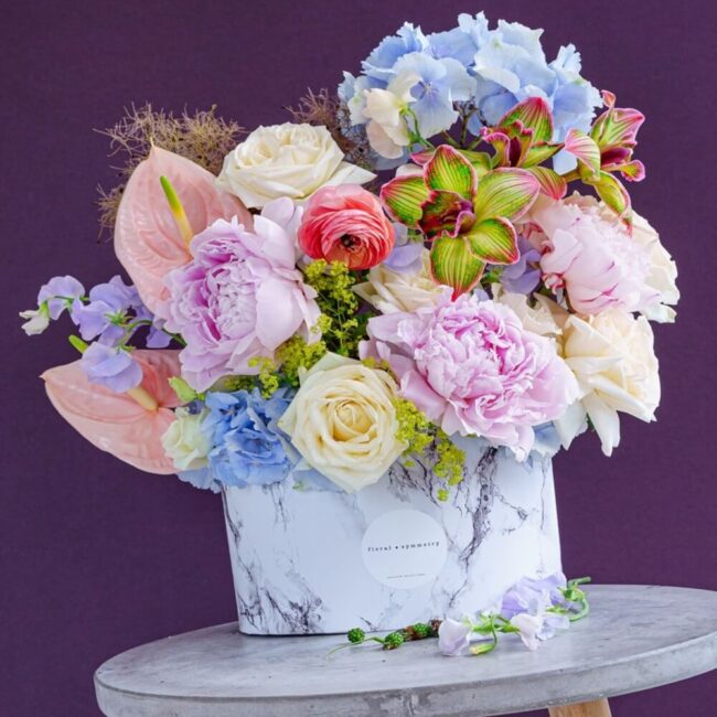 Nota Intrucat sezonalitatea florilor si disponibilitatea vaselor pot varia, Floral Symmetry isi rezerva dreptul de a determina componenta finala a produsului. Acest lucru nu trebuie sa va ingrijoreze: el garanteaza unicitatea buchetului/aranjamentului dumneavoastra. Floral Symmetry isi ia angajamentul ca design-ul final sa respecte tematica propusa si sa pastreze aceeasi linie eleganta si rafinata.