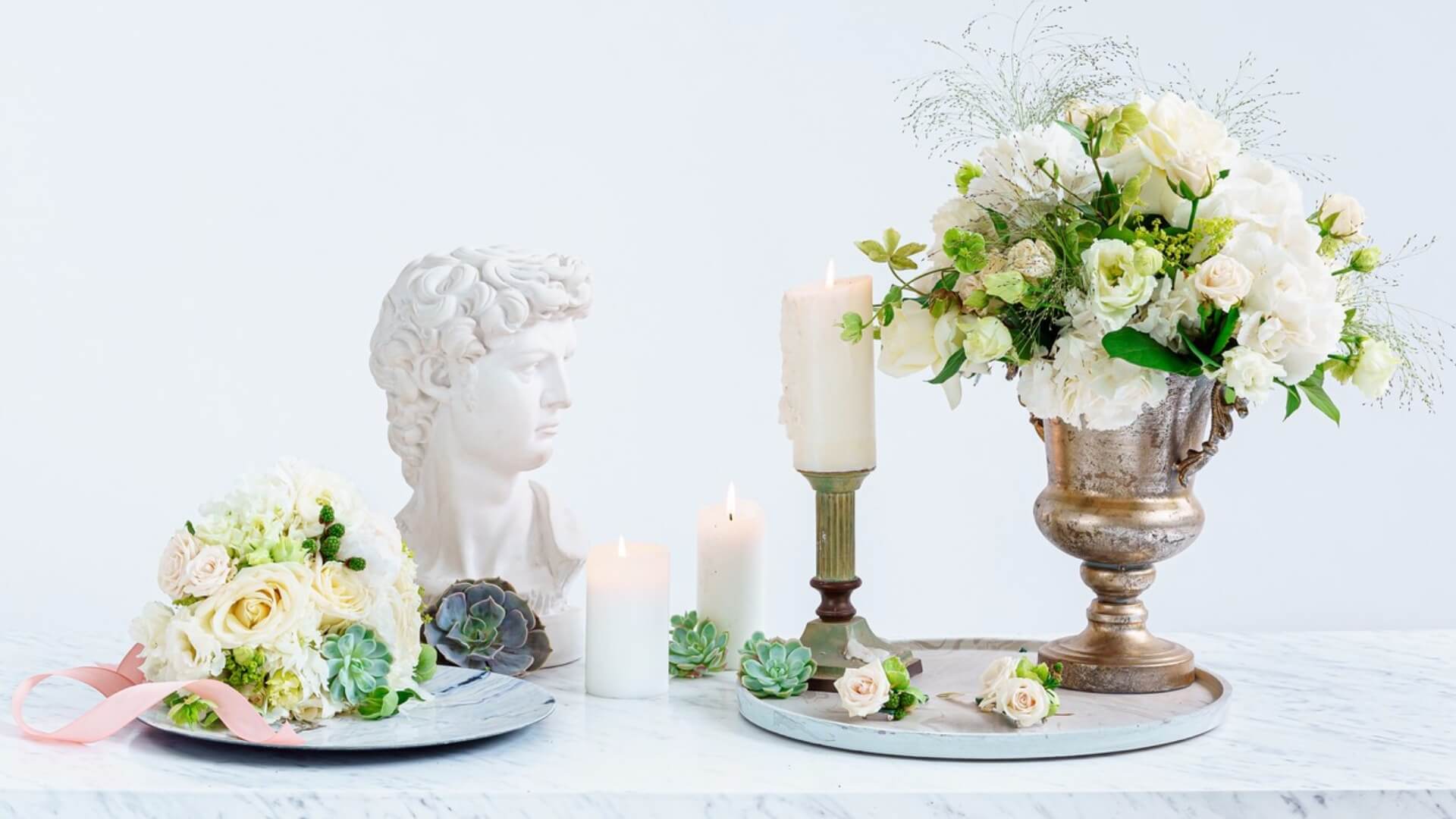 Alegerea acestei tematici va reflecta puritatea si inocenta miresei si nu in ultimul rând preferinta ei pentru eleganta, simplitate si delicatete. Fresh, iconic si mereu in tendinte, tematica de nunta All White va crea o impresie spectaculoasa prin alegerea corecta a tonurilor de alb si imbinarea creativa a subtonurilor lor.